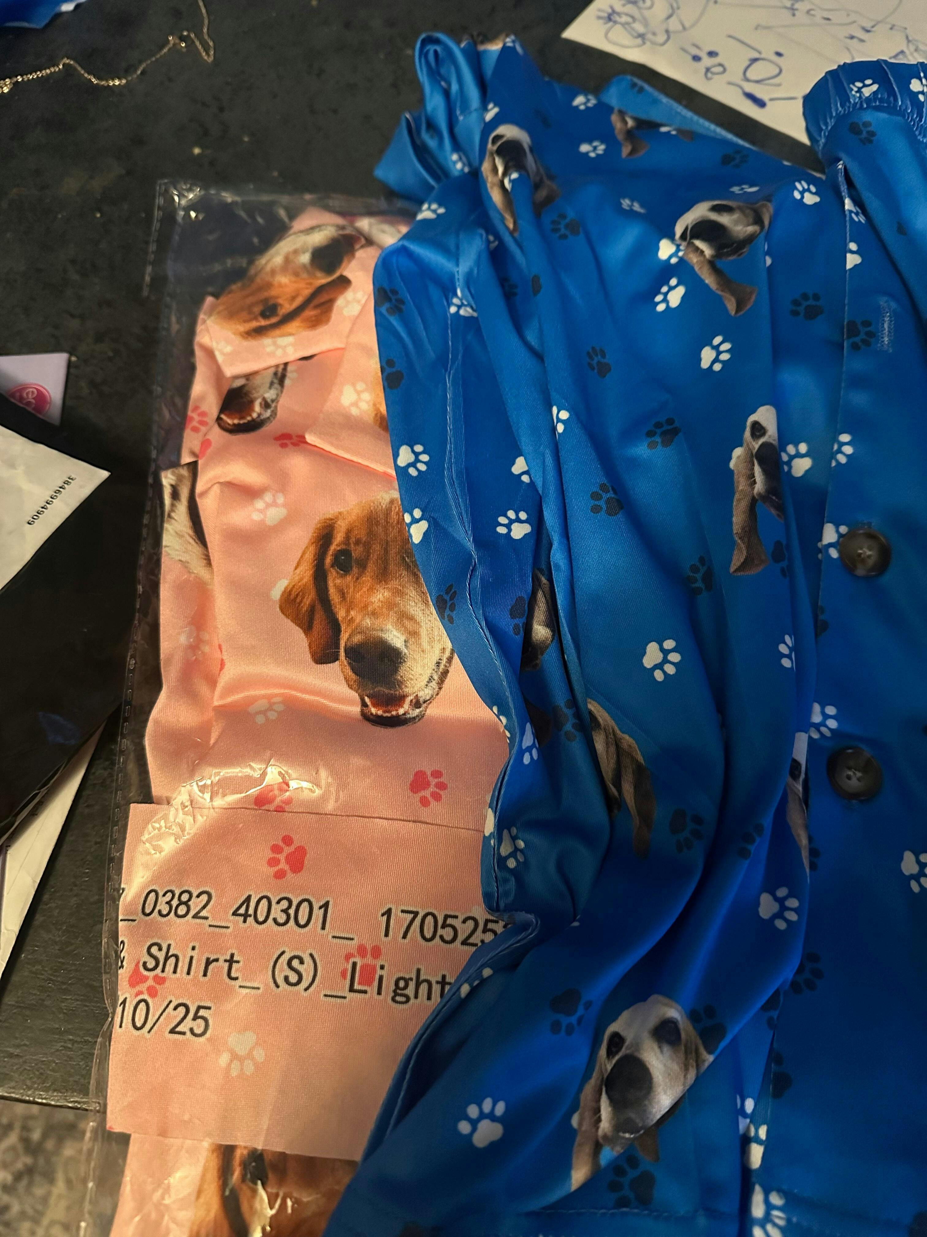 These will be a Christmas gift for my ten year old granddaughter. She will LOVE the pic of her pup, Spud, on the jammies. Thanks for creating such a unique item.